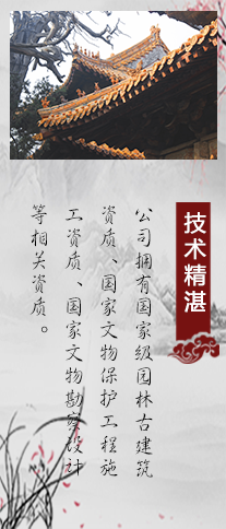 堅持質(zhì)量為先,信譽(yù)為重,管理為本,服務(wù)為誠的理念。本著對社會、對建設(shè)單位負(fù)責(zé)的原則,將工程質(zhì)量、安全生產(chǎn)放在工作的重要位置。我們堅持發(fā)展古建藝術(shù),弘揚(yáng)民族文化,作為企業(yè)的經(jīng)營管理理念。曲阜古建筑義德古建始終秉承“科學(xué)管理,創(chuàng)精品工程,打造古建筑行業(yè)標(biāo)準(zhǔn)”的方針,追求更高質(zhì)量,為文物保護(hù)、傳統(tǒng)建筑事業(yè)做出貢獻(xiàn)。